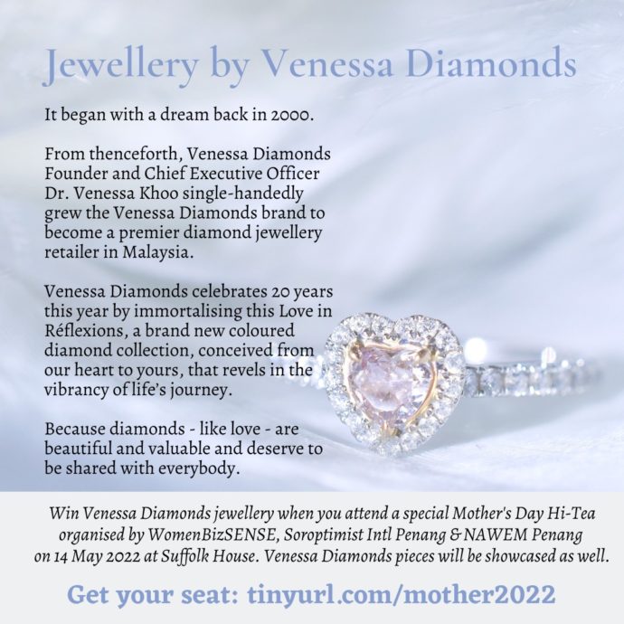 Win Venessa Diamonds jewellery worth RM1,000 in our lucky draw plus a host of incredible prizes from our sponsors! Suffolk House hi-tea is also included.